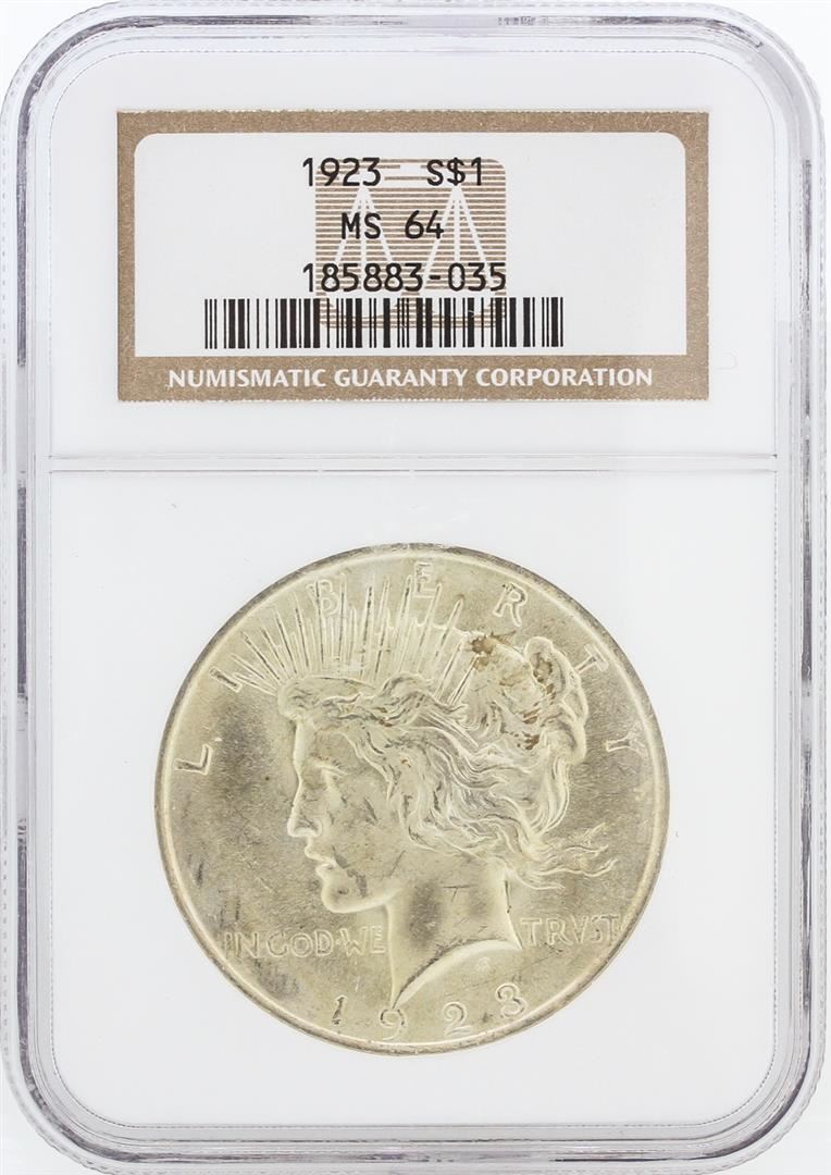 One 1923 NGC MS64 Peace Silver Dollar. NGC Certified.