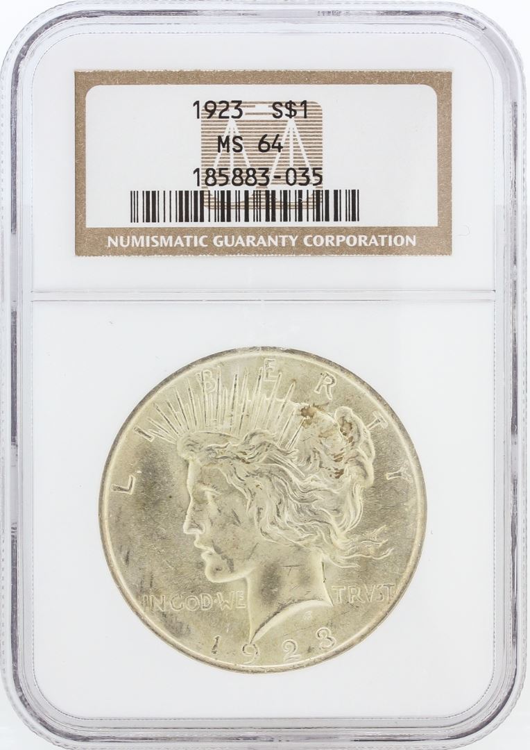 One 1923 NGC MS64 Peace Silver Dollar. NGC Certified.