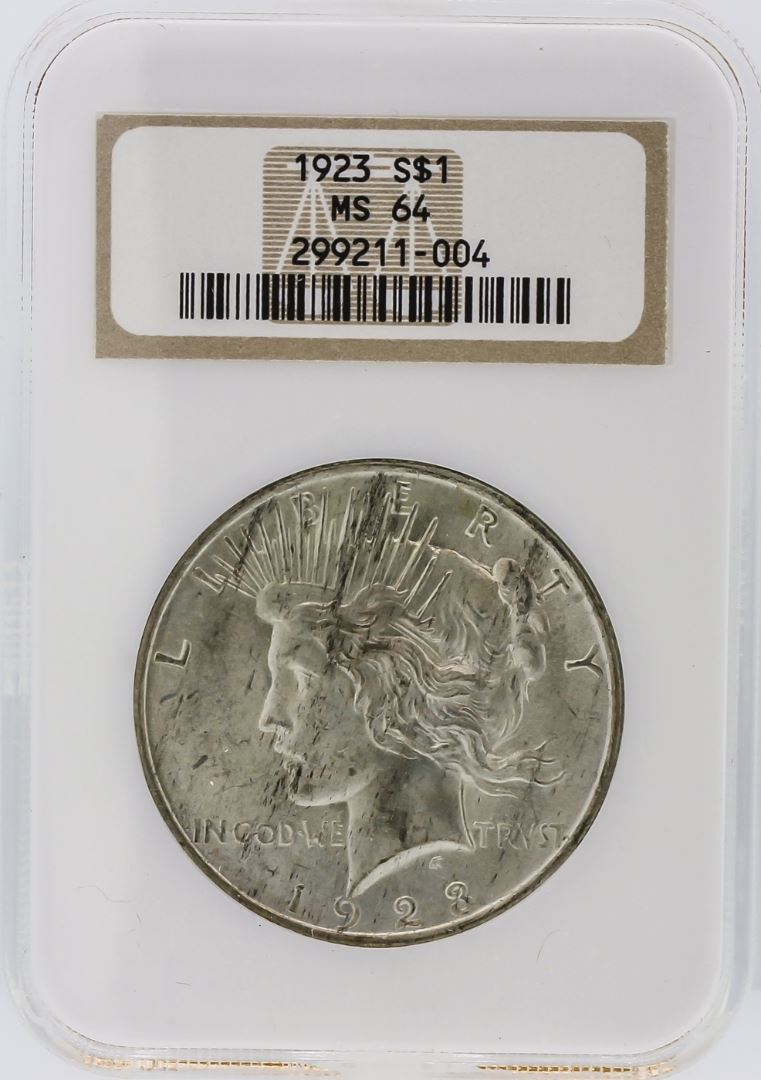One 1923 NGC MS64 Peace Silver Dollar. NGC Certified.