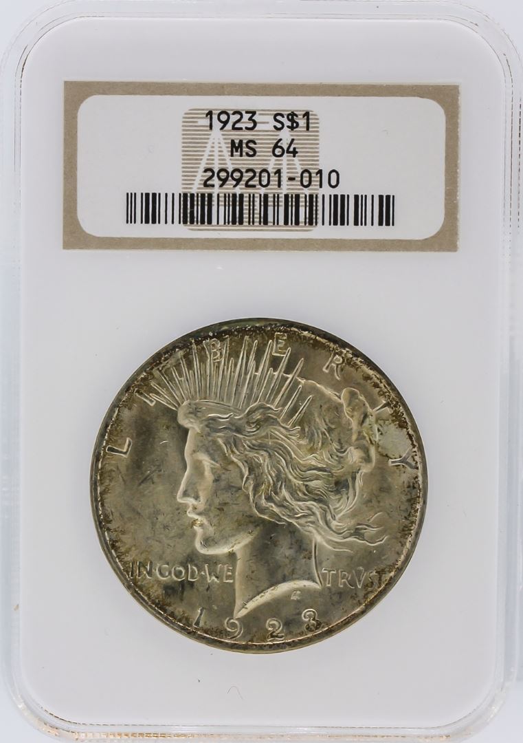 One 1923 NGC MS64 Peace Silver Dollar. NGC Certified.