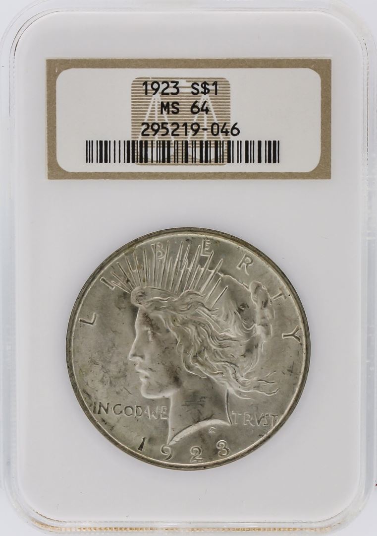 One 1923 NGC MS64 Peace Silver Dollar. NGC Certified.