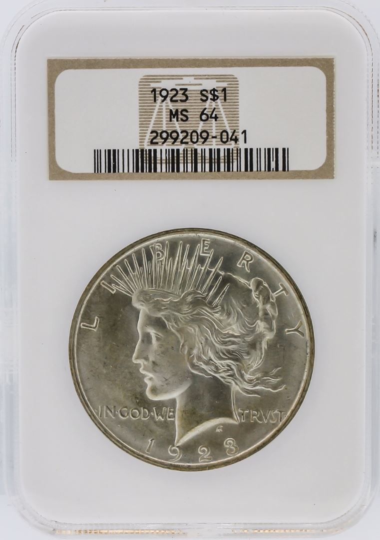 One 1923 NGC MS64 Peace Silver Dollar. NGC Certified.