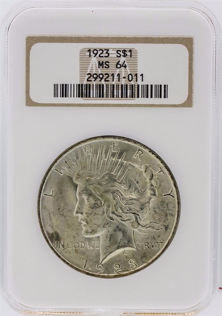 One 1923 NGC MS64 Peace Silver Dollar. NGC Certified.
