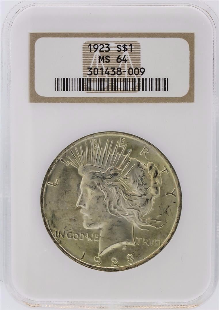 One 1923 NGC MS64 Peace Silver Dollar. NGC Certified.
