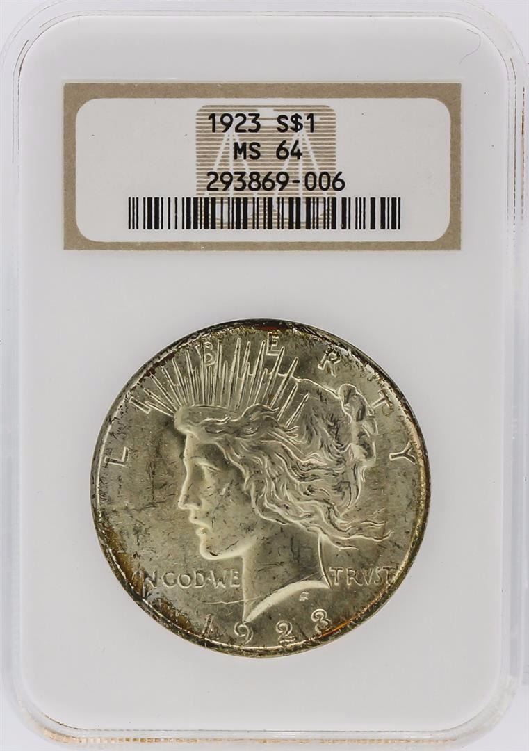 One 1923 NGC MS64 Peace Silver Dollar. NGC Certified.
