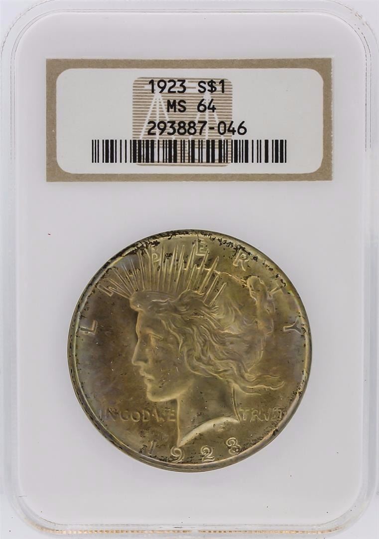 One 1923 NGC MS64 Peace Silver Dollar. NGC Certified.