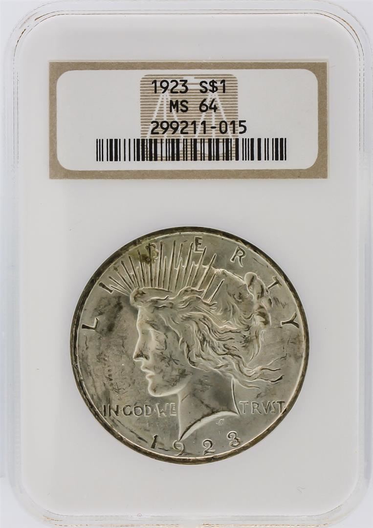 One 1923 NGC MS64 Peace Silver Dollar. NGC Certified.