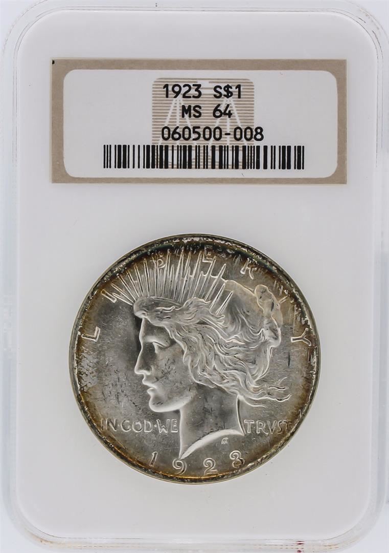 One 1923 NGC MS64 Peace Silver Dollar. NGC Certified.