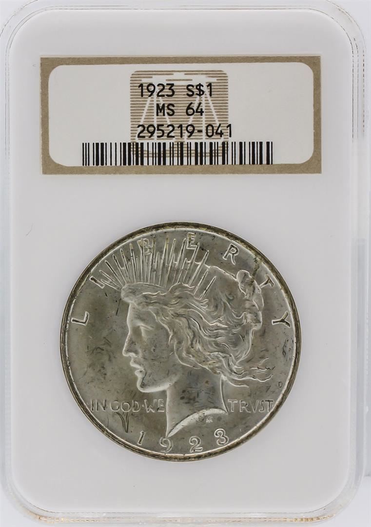 One 1923 NGC MS64 Peace Silver Dollar. NGC Certified.