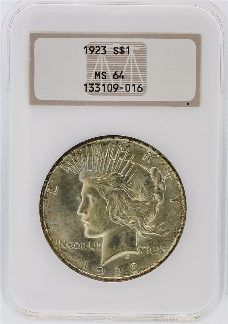 One 1923 NGC MS64 Peace Silver Dollar. NGC Certified.