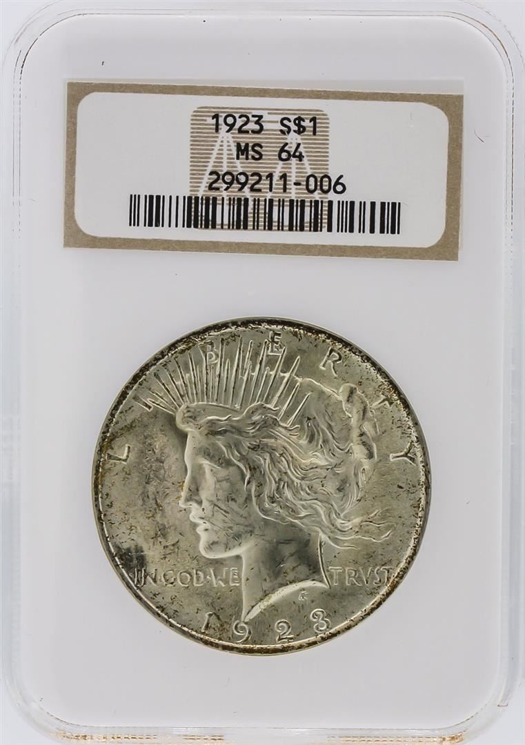 One 1923 NGC MS64 Peace Silver Dollar. NGC Certified.