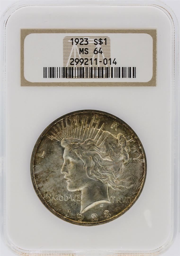 One 1923 NGC MS64 Peace Silver Dollar. NGC Certified.
