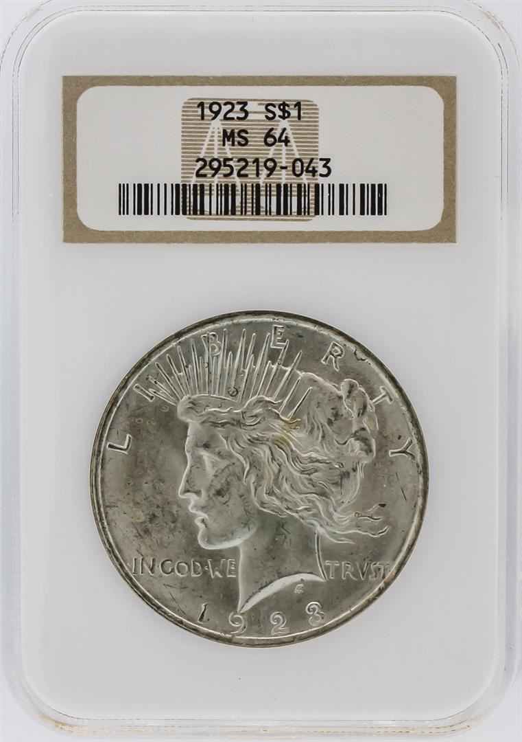 One 1923 NGC MS64 Peace Silver Dollar. NGC Certified.