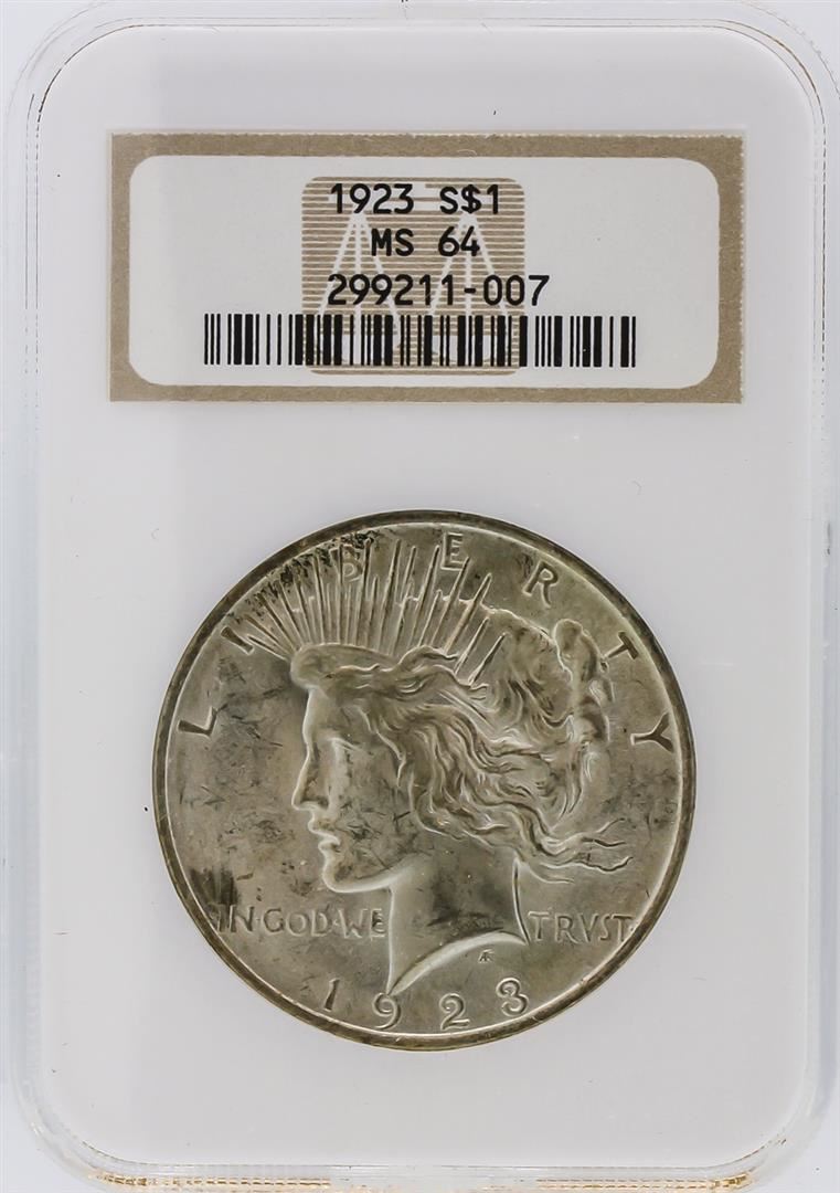 One 1923 NGC MS64 Peace Silver Dollar. NGC Certified.