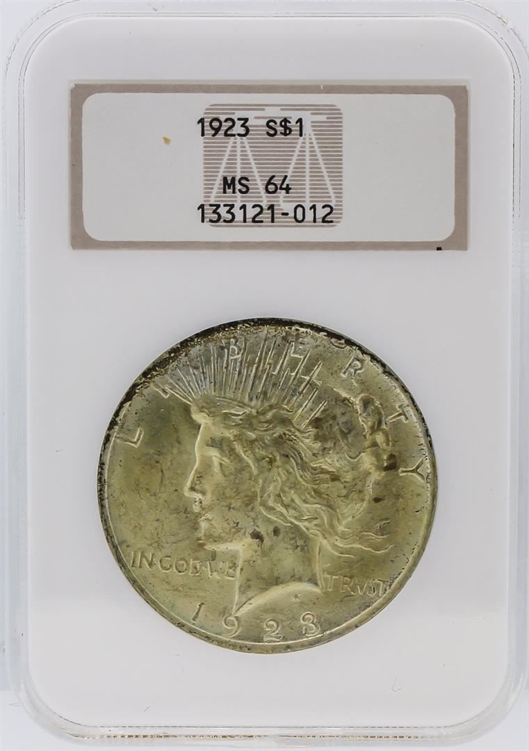 One 1923 NGC MS64 Peace Silver Dollar. NGC Certified.