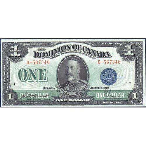 1923 One Dollar McCavour-Saunders, Blue Seal, Group 1, DC-25c, Serial Number G-567346 C, AU. Slightly off centre toward the bottom and left