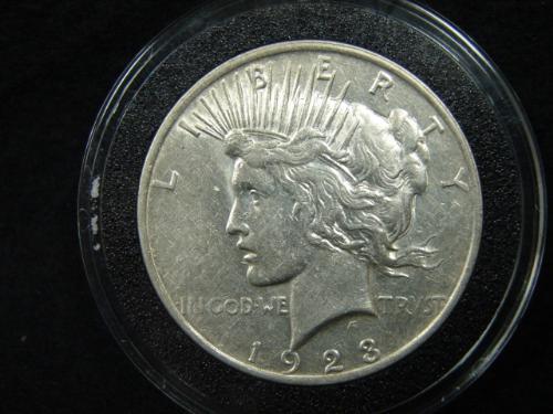 1923 U.S. PEACE DOLLAR. Coin is in circular case.