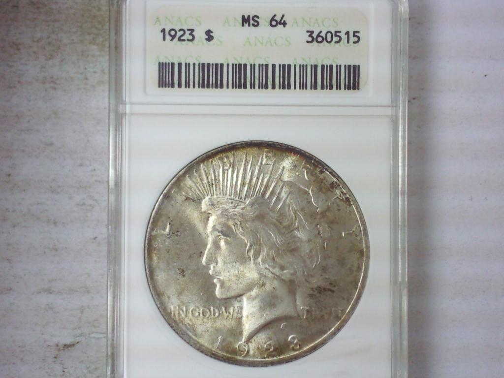 1923 PEACE SILVER DOLLAR ANACS MS64