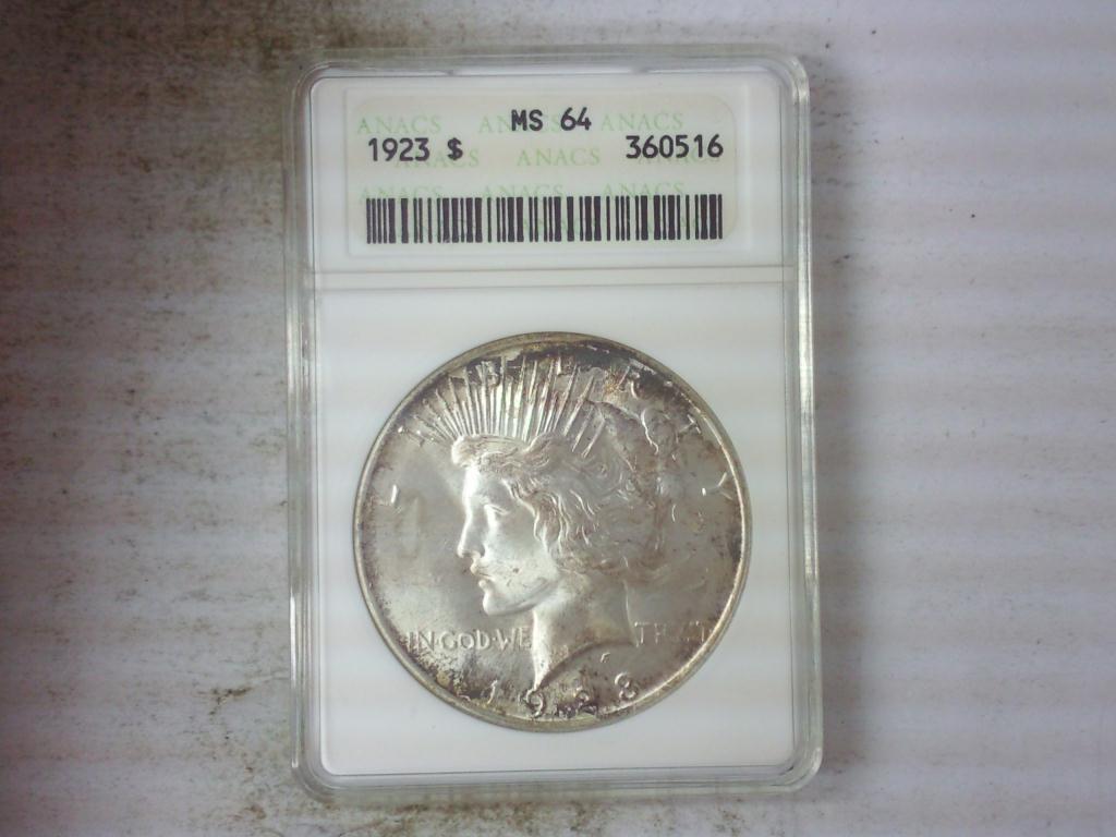 1923 PEACE SILVER DOLLAR ANACS MS64