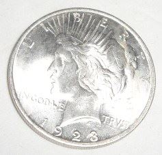 1923 PEACE SILVER DOLLAR *NICE EARLY-MS HIGH GRADE 3RD YEAR U.S SILVER DOLLAR*!! SILVER DOLLAR CAME OUT OF SAFE!! ***Coin, Currency & All Items Listed in this auction - Grades, Conditions and Values are not Safe Deposit Coins LLC Responsibilty. Grades, Condition and Values are determined by Consigner(s) & Buyers ONLY