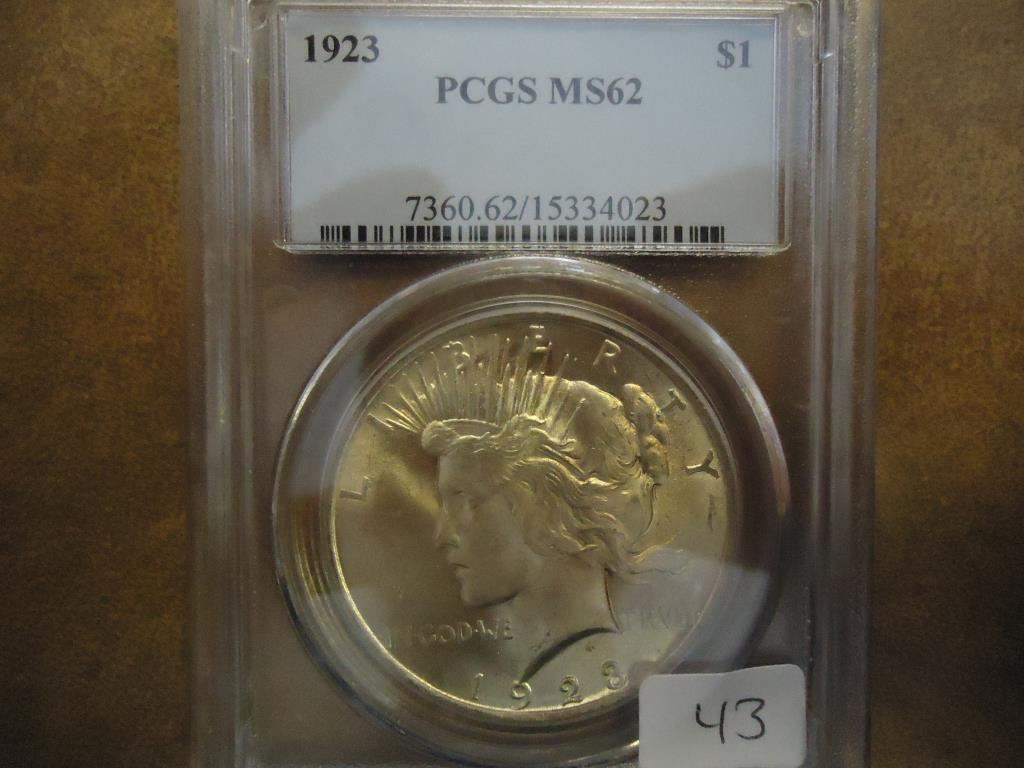 1923 PEACE SILVER DOLLAR PCGS MS62 TONED ON REV.