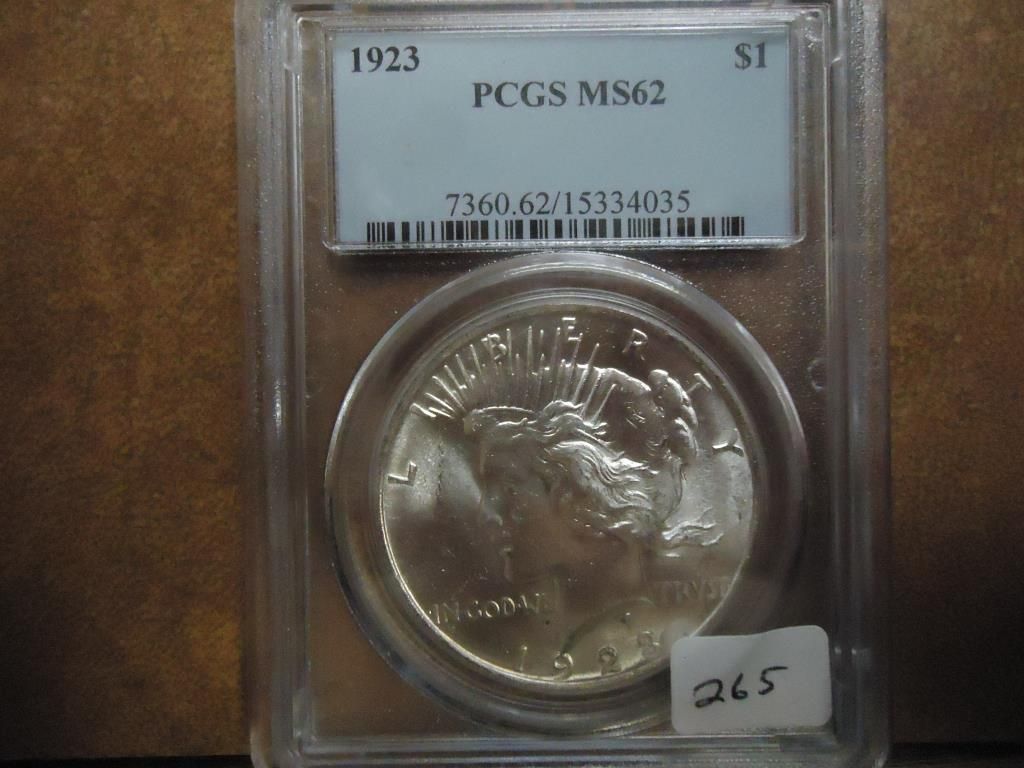 1923 PEACE SILVER DOLLAR PCGS MS62