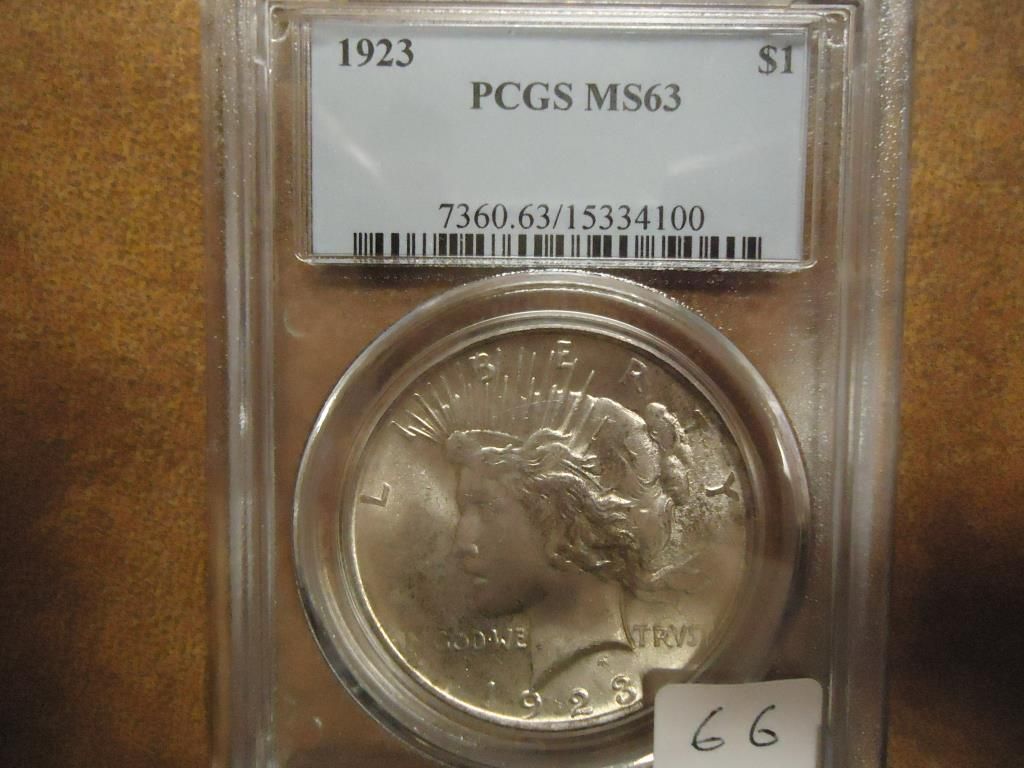 1923 PEACE SILVER DOLLAR PCGS MS63