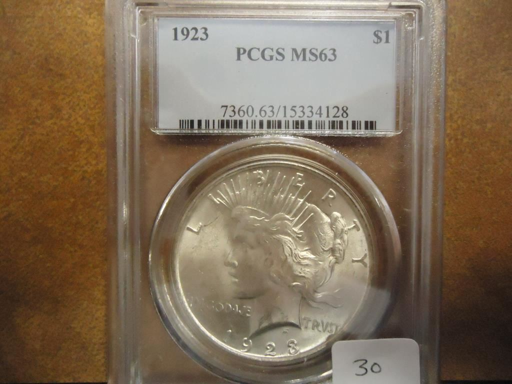 1923 PEACE SILVER DOLLAR PCGS MS63