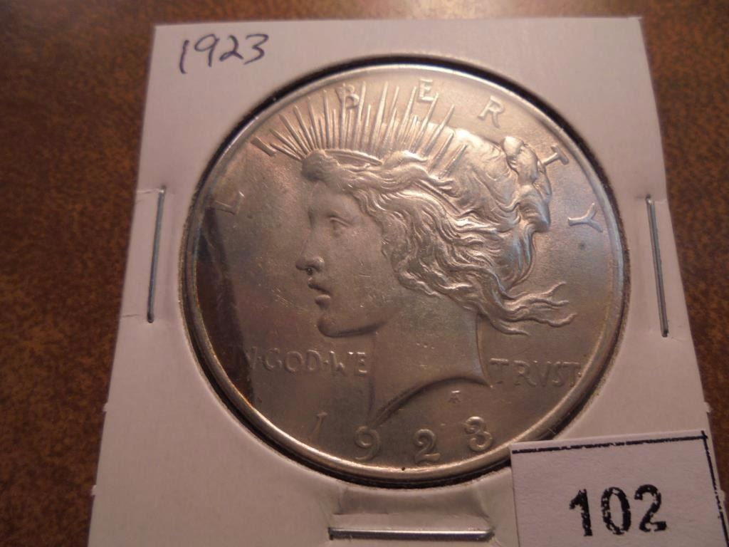 1923 PEACE SILVER DOLLAR SOME TONING ON OBV.