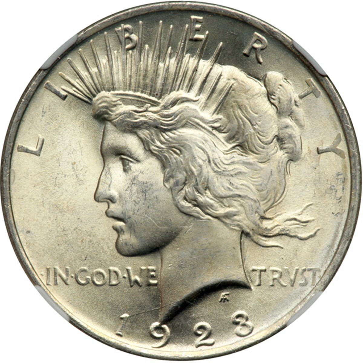 1923 Peace Dollar. NGC graded MS-66. A creamy-white gem.