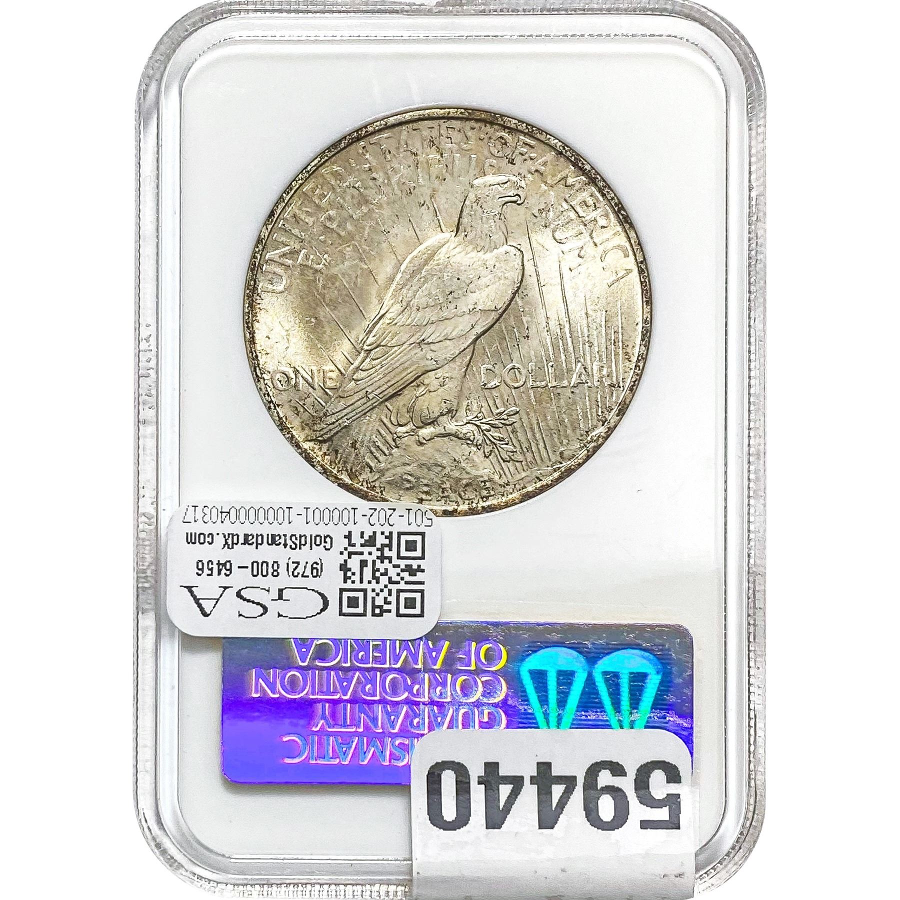 l. All non-certified coins and currency are guaranteed genuine, but are not guaranteed as to grade, since grading is a matter of opinion, an art and not a science, and therefore the description rendered by GSA or any third-party grading service may not agree with the opinion of others (including trained experts), and the same expert may not grade the same item with the same grade at two different times. GSA may, but is not obligated to, express an opinion as to non-certified numismatic items, in GSA’s opinion, or by its employees’ experience and the current interpretation of the American Numismatic Association’s standards as of the date the catalog was prepared. There is no guarantee or warranty expressed or implied that the grading opinions utilized by GSA, if any, will meet the standards of any grading service at any time in the future.