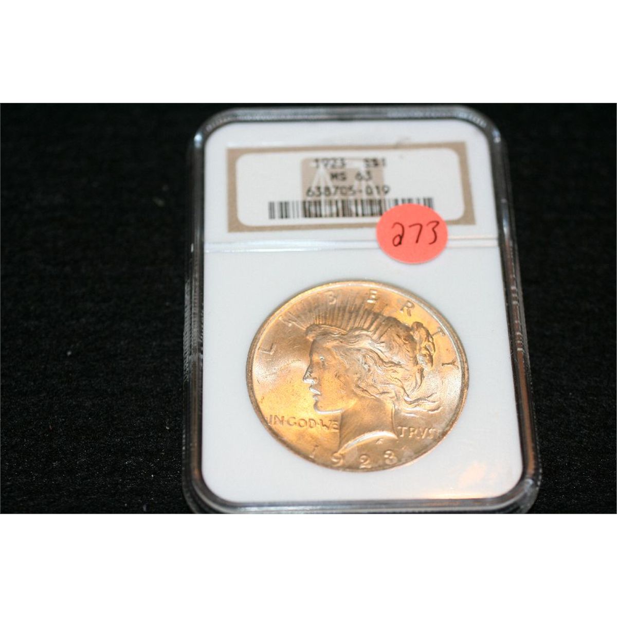 1923 Peace one dollar, NGC graded, MS63