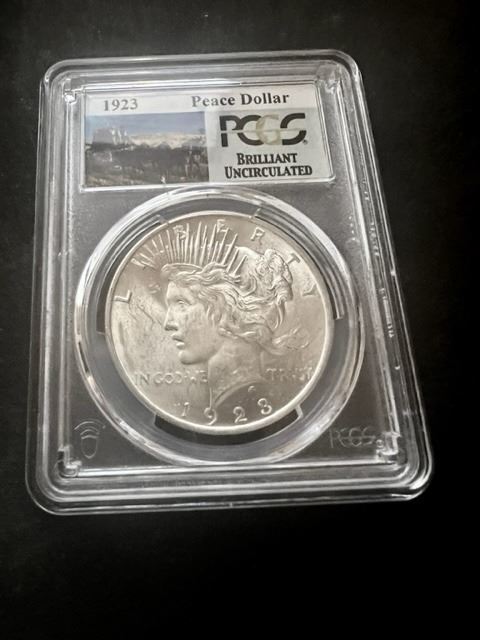 1923 RARE STAGECOACH PEACE DOLLAR PCGS BU