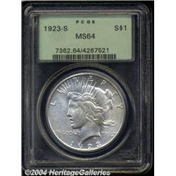 <table><tr><td><TABLE cellSpacing=0 cellPadding=0 width="100%" bgColor=#000000 border=0><TBODY> <TR><TD width="100%"><TABLE cellSpacing=1 cellPadding=3 width="100%" border=0><TBODY><TR><TD width="100%" bgColor=#79735c><FONT face=arial color=#ffffff size=3><B>Description</B> </FONT></TD></TR><TR><TD width="100%" bgColor=#ffffff><FONT face=arial size=2><B>1923-S $1 MS64 PCGS.</B></I> Surprisingly clean, this brilliant example shows the usual weakness of highpoint detail on the eagle's feathers but is otherwise well brought up. </FONT></TD></TR></TBODY></TABLE></TD></TR></TBODY></TABLE><BR><A name=PricesRealized></A><TABLE cellSpacing=0 cellPadding=0 width="100%" bgColor=#000000 border=0><TBODY><TR><TD width="100%"><TABLE cellSpacing=1 cellPadding=3 width="100%" border=0><TBODY><TR><TD width="100%" bgColor=#79735c><A name=PR><FONT face=arial color=#ffffff size=3><B>Previous Prices from Heritage Auctions</B> </FONT></A></TD></TR><TR><TD bgColor=#f6f6ed><TABLE cellSpacing=0 cellPadding=0 width="100%" border=1><TBODY><TR><TD align=middle width="33%"><B>Date</B></TD><TD align=middle width="33%"><B>Service</B></TD><TD align=middle width="33%"><B>Price</B></TD></TR><TR bgColor=whitesmoke><TD width="33%"><B>12/30/2003</B></TD><TD width="33%">PCGS</TD><TD width="33%">$166.75</TD></TR><TR bgColor=whitesmoke><TD width="33%"><B>10/21/2003</B></TD><TD width="33%">NGC</TD><TD width="33%">$138.00</TD></TR><TR bgColor=whitesmoke><TD width="33%"><B>10/07/2003</B></TD><TD width="33%">PCGS</TD><TD width="33%">$235.75</TD></TR><TR bgColor=whitesmoke><TD width="33%"><B>08/19/2003</B></TD><TD width="33%">NGC</TD><TD width="33%">$172.50</TD></TR><TR bgColor=whitesmoke><TD width="33%"><B>02/11/2003</B></TD><TD width="33%">NGC</TD><TD width="33%">$138.00</TD></TR><TR bgColor=whitesmoke><TD width="33%"><B>09/17/2002</B></TD><TD width="33%">NGC</TD><TD width="33%">$132.25</TD></TR><TR bgColor=whitesmoke><TD width="33%"><B>07/16/2002</B></TD><TD width="33%">NGC</TD><TD width="33%">$184.00</TD></TR><TR bgColor=whitesmoke><TD width="33%"><B>04/23/2002</B></TD><TD width="33%">PCGS</TD><TD width="33%">$178.25</TD></TR><TR bgColor=whitesmoke><TD width="33%"><B>10/09/2001</B></TD><TD width="33%">PCGS</TD><TD width="33%">$180.00</TD></TR><TR bgColor=whitesmoke><TD width="33%"><B>07/31/2001</B></TD><TD width="33%">NGC</TD><TD width="33%">$130.00</TD></TR><TR bgColor=whitesmoke><TD width="33%"><B>04/17/2001</B></TD><TD width="33%">PCGS</TD><TD width="33%">$151.00</TD></TR><TR bgColor=whitesmoke><TD width="33%"><B>11/28/2000</B></TD><TD width="33%">NGC</TD><TD width="33%">$170.00</TD></TR><TR bgColor=whitesmoke><TD width="33%"><B>11/07/2000</B></TD><TD width="33%">NGC</TD><TD width="33%">$155.00</TD></TR><TR bgColor=whitesmoke><TD width="33%"><B>01/12/2004</B></TD><TD width="33%">PCGS</TD><TD width="33%">$178.25</TD></TR><TR bgColor=whitesmoke><TD width="33%"><B>01/12/2004</B></TD><TD width="33%">PCGS</TD><TD width="33%">$189.75</TD></TR><TR bgColor=whitesmoke><TD width="33%"><B>11/17/2003</B></TD><TD width="33%">PCGS</TD><TD width="33%">$126.50</TD></TR><TR bgColor=whitesmoke><TD width="33%"><B>11/07/2003</B></TD><TD width="33%">PCGS</TD><TD width="33%">$230.00</TD></TR><TR bgColor=whitesmoke><TD width="33%"><B>09/22/2003</B></TD><TD width="33%">NGC</TD><TD width="33%">$104.65</TD></TR><TR bgColor=whitesmoke><TD width="33%"><B>09/22/2003</B></TD><TD width="33%">NGC</TD><TD width="33%">$143.75</TD></TR><TR bgColor=whitesmoke><TD width="33%"><B>08/06/2003</B></TD><TD width="33%">NGC</TD><TD width="33%">$132.25</TD></TR><TR bgColor=whitesmoke><TD width="33%"><B>05/05/2003</B></TD><TD width="33%">PCGS</TD><TD width="33%">$174.80</TD></TR><TR bgColor=whitesmoke><TD width="33%"><B>03/01/2003</B></TD><TD width="33%">PCGS</TD><TD width="33%">$373.75</TD></TR><TR bgColor=whitesmoke><TD width="33%"><B>09/30/2002</B></TD><TD width="33%">PCGS</TD><TD width="33%">$149.50</TD></TR><TR bgColor=whitesmoke><TD width="33%"><B>07/29/2002</B></TD><TD width="33%">NGC</TD><TD width="33%">$126.50</TD></TR><TR bgColor=whitesmoke><TD width="33%"><B>06/08/2002</B></TD><TD width="33%">PCGS</TD><TD width="33%">$207.00</TD></TR><TR bgColor=whitesmoke><TD width="33%"><B>02/23/2002</B></TD><TD width="33%">PCGS</TD><TD width="33%">$460.00</TD></TR><TR bgColor=whitesmoke><TD width="33%"><B>08/05/2001</B></TD><TD width="33%">NGC</TD><TD width="33%">$129.95</TD></TR><TR bgColor=whitesmoke><TD width="33%"><B>04/07/2001</B></TD><TD width="33%">PCGS</TD><TD width="33%">$127.65</TD></TR><TR bgColor=whitesmoke><TD width="33%"><B>01/05/2001</B></TD><TD width="33%">PCGS</TD><TD width="33%">$149.50</TD></TR><TR bgColor=whitesmoke><TD width="33%"><B>11/19/1999</B></TD><TD width="33%">PCGS</TD><TD width="33%">$143.75</TD></TR><TR bgColor=whitesmoke><TD width="33%"><B>09/25/1999</B></TD><TD width="33%">NGC</TD><TD width="33%">$126.50</TD></TR><TR bgColor=whitesmoke><TD width="33%"><B>08/07/1999</B></TD><TD width="33%">PCGS</TD><TD width="33%">$184.00</TD></TR><TR bgColor=whitesmoke><TD width="33%"><B>11/07/1998</B></TD><TD width="33%">NGC</TD><TD width="33%">$110.00</TD></TR><TR bgColor=whitesmoke><TD width="33%"><B>06/06/1998</B></TD><TD width="33%">NGC</TD><TD width="33%">$253.00</TD></TR><TR bgColor=whitesmoke><TD width="33%"><B>01/07/1998</B></TD><TD width="33%">PCGS</TD><TD width="33%">$121.00</TD></TR><TR bgColor=whitesmoke><TD width="33%"><B>11/21/1997</B></TD><TD width="33%">PCGS</TD><TD width="33%">$110.00</TD></TR><TR bgColor=whitesmoke><TD width="33%"><B>04/11/1997</B></TD><TD width="33%">NGC</TD><TD width="33%">$308.00</TD></TR><TR bgColor=whitesmoke><TD width="33%"><B>03/19/1997</B></TD><TD width="33%">PCGS</TD><TD width="33%">$286.00</TD></TR><TR bgColor=whitesmoke><TD width="33%"><B>02/22/1997</B></TD><TD width="33%">PCGS</TD><TD width="33%">$176.00</TD></TR><TR bgColor=whitesmoke><TD width="33%"><B>01/11/1997</B></TD><TD width="33%">PCGS</TD><TD width="33%">$212.75</TD></TR><TR bgColor=whitesmoke><TD width="33%"><B>08/13/1996</B></TD><TD width="33%">PCGS<