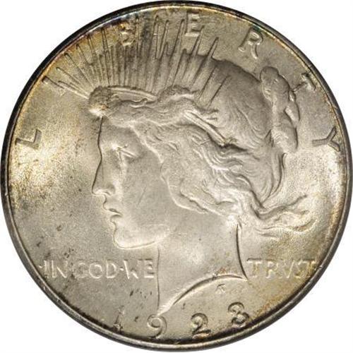 <B>1923-S $1 MS65 PCGS.</B></I> While nowhere near as sharply struck as one would expect of a P-mint from this year, the coin's sheer frostiness and originality combined with its obvious lack of surface marks should win over even the fussiest collector. Population: 98 in 65, 3 finer (7/07).<I><BR>From The Arnold & Harriet Collection.</B></I><BR><BR><B>Coin Engraver:</B> Anthony de Francisci<BR><BR><b>Shipping:</b> Coins & Currency (<a target="_blank" href="http://www.heritageauctions.com/common/shipping.php">view shipping information</a>\)