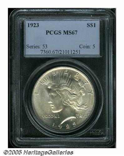 1923 S$1 MS67 PCGS. The centers are razor-sharp,