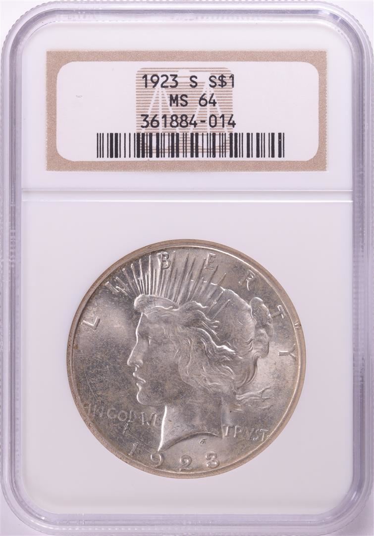 One 1923-S $1 Peace Silver Dollar Coin NGC MS64. NGC Certified.