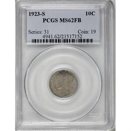 <B>1923-S 10C MS62 Full Bands PCGS.</B></I> PCGS Population (24/125). NGC Census: (23/47). Mintage: 6,440,000. Numismedia Wsl. Price for NGC/PCGS coin in MS62: $400. (#4941)<BR><BR><B>Coin Engraver:</B> Adolph A. Weinman<BR><BR><b>Shipping:</b> Coins & Currency (<a target="_blank" href="http://www.heritageauctions.com/common/shipping.php">view shipping information</a>)