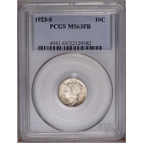 1923-S 10C MS63 Full Bands PCGS. This sharply struck, 1923-S[10C] MS63 Full Bands PCGS.