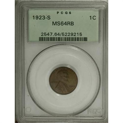 <B>1923-S 1C MS64 Red and Brown PCGS.</B></I> This older holder branch mint cent has lovely blended jade-green and plum-red toning. Marks and carbon are inconsequential, although a retained lamination is present on the left obverse field.<BR><BR><B>Coin Engraver:</B> Victor D. Brenner<BR><BR><b>Shipping:</b> Coins & Currency (<a target="_blank" href="http://www.heritageauctions.com/common/shipping.php">view shipping information</a>)