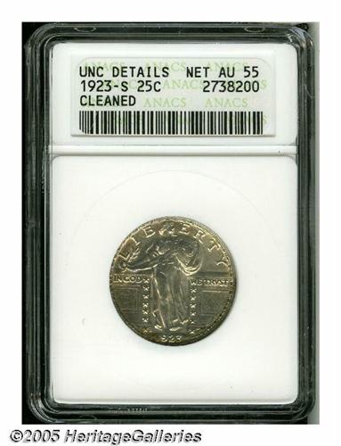 1923-S 25C --Cleaned--ANACS. Unc Details, Net AU5