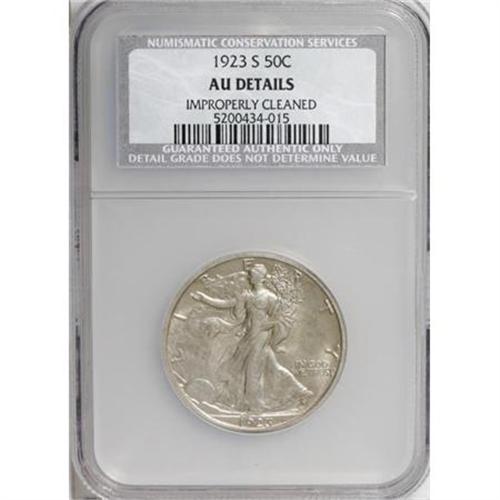 <B>1923-S 50C --Improperly Cleaned--NCS. AU Details.</B></I> NGC Census: (0/0). PCGS Population (0/0). Mintage: 2,178,000. (#6586)<BR><BR><B>Coin Engraver:</B> Adolph A. Weinman<BR><BR><b>Shipping:</b> Coins & Currency (<a target="_blank" href="http://www.heritageauctions.com/common/shipping.php">view shipping information</a>)
