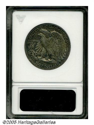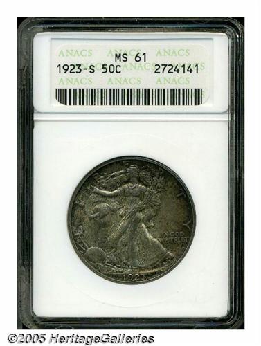<B>1923-S<50C> MS61 ANACS.</B></I> The '23-S is a scarce early Walker. Mint State coins in particular are elusive and always in demand. This example displays a veneer of deep olive-tan patina over each side. The design features are well impressed, and the surfaces are seeming free of significant marks.