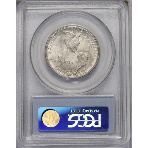 <B>1923-S<50C> Monroe MS64 PCGS.</B></I> Occasional speckles of cobalt-blue and lavender toning are located along the right obverse border of this well struck, lustrous commemorative. A few grade-defining marks are visible on the cheeks of the obverse portraits and in the right reverse fields.