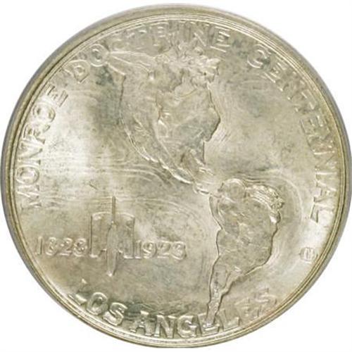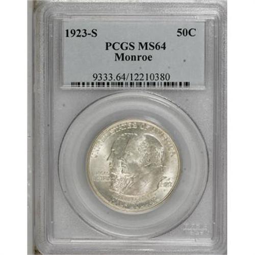 <B>1923-S 50C Monroe MS64 PCGS.</B></I> PCGS Population (1430/393). NGC Census: (1424/347). Mintage: 274,077. Numismedia Wsl. Price for NGC/PCGS coin in MS64: $380. (#9333)<BR><BR><b>Shipping:</b> Coins & Currency (<a target="_blank" href="http://www.heritageauctions.com/common/shipping.php">view shipping information</a>)