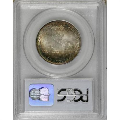 <B>1923-S 50C Monroe MS65 PCGS. CAC.</B></I> An uncommonly appealing Gem representative of this famous conditionally elusive issue. Elements of green-gold, lemon-orange, blue, and violet visit the margins, while the centers remain essentially untoned. A well-defined and pleasingly preserved survivor. PCGS has graded 51 finer examples (2/08).<BR><BR><b>Shipping:</b> Coins & Currency (<a target="_blank" href="http://www.heritageauctions.com/common/shipping.php">view shipping information</a>)