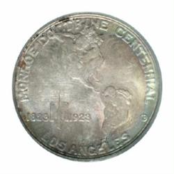 <table><tr><td><TABLE cellSpacing=0 cellPadding=0 width="100%" bgColor=#000000 border=0><TBODY> <TR><TD width="100%"><TABLE cellSpacing=1 cellPadding=3 width="100%" border=0><TBODY><TR><TD width="100%" bgColor=#79735c><FONT face=arial color=#ffffff size=3><B>Description</B> </FONT></TD></TR><TR><TD width="100%" bgColor=#ffffff><FONT face=arial size=2><B>1923-S 50C Monroe MS65 PCGS.</B></I> Quite well frosted under mottled golden-rose and pale orange toning, with mint-green peripheral highlights. The Monroe Doctrine Half is now recognized as one of the most conditionally scarce early commemoratives.<BR><I>From The Sound Beach Collection.</B></I> </FONT></TD></TR></TBODY></TABLE></TD></TR></TBODY></TABLE><BR><A name=PricesRealized></A><TABLE cellSpacing=0 cellPadding=0 width="100%" bgColor=#000000 border=0><TBODY><TR><TD width="100%"><TABLE cellSpacing=1 cellPadding=3 width="100%" border=0><TBODY><TR><TD width="100%" bgColor=#79735c><A name=PR><FONT face=arial color=#ffffff size=3><B>Previous Prices from Heritage Auctions</B> </FONT></A></TD></TR><TR><TD bgColor=#f6f6ed><TABLE cellSpacing=0 cellPadding=0 width="100%" border=1><TBODY><TR><TD align=middle width="33%"><B>Date</B></TD><TD align=middle width="33%"><B>Service</B></TD><TD align=middle width="33%"><B>Price</B></TD></TR><TR bgColor=whitesmoke><TD width="33%"><B>04/08/2003</B></TD><TD width="33%">PCGS</TD><TD width="33%">$2,012.50</TD></TR><TR bgColor=whitesmoke><TD width="33%"><B>06/11/2002</B></TD><TD width="33%">NGC</TD><TD width="33%">$1,610.00</TD></TR><TR bgColor=whitesmoke><TD width="33%"><B>03/26/2002</B></TD><TD width="33%">NGC</TD><TD width="33%">$1,667.50</TD></TR><TR bgColor=whitesmoke><TD width="33%"><B>06/12/2001</B></TD><TD width="33%">NGC</TD><TD width="33%">$1,700.00</TD></TR><TR bgColor=whitesmoke><TD width="33%"><B>09/20/2003</B></TD><TD width="33%">PCGS</TD><TD width="33%">$1,207.50</TD></TR><TR bgColor=whitesmoke><TD width="33%"><B>09/20/2003</B></TD><TD width="33%">NGC</TD><TD width="33%">$2,012.50</TD></TR><TR bgColor=whitesmoke><TD width="33%"><B>01/11/2003</B></TD><TD width="33%">PCGS</TD><TD width="33%">$2,300.00</TD></TR><TR bgColor=whitesmoke><TD width="33%"><B>09/28/2002</B></TD><TD width="33%">NGC</TD><TD width="33%">$2,702.50</TD></TR><TR bgColor=whitesmoke><TD width="33%"><B>07/30/2002</B></TD><TD width="33%">PCGS</TD><TD width="33%">$2,127.50</TD></TR><TR bgColor=whitesmoke><TD width="33%"><B>07/30/2002</B></TD><TD width="33%">PCGS</TD><TD width="33%">$2,012.50</TD></TR><TR bgColor=whitesmoke><TD width="33%"><B>04/27/2002</B></TD><TD width="33%">PCGS</TD><TD width="33%">$1,955.00</TD></TR><TR bgColor=whitesmoke><TD width="33%"><B>02/23/2002</B></TD><TD width="33%">NGC</TD><TD width="33%">$1,207.50</TD></TR><TR bgColor=whitesmoke><TD width="33%"><B>02/23/2002</B></TD><TD width="33%">NGC</TD><TD width="33%">$1,207.50</TD></TR><TR bgColor=whitesmoke><TD width="33%"><B>02/23/2002</B></TD><TD width="33%">NGC</TD><TD width="33%">$1,207.50</TD></TR><TR bgColor=whitesmoke><TD width="33%"><B>02/23/2002</B></TD><TD width="33%">PCGS</TD><TD width="33%">$2,300.00</TD></TR><TR bgColor=whitesmoke><TD width="33%"><B>11/15/2001</B></TD><TD width="33%">NGC</TD><TD width="33%">$4,830.00</TD></TR><TR bgColor=whitesmoke><TD width="33%"><B>10/07/2001</B></TD><TD width="33%">PCGS</TD><TD width="33%">$920.00</TD></TR><TR bgColor=whitesmoke><TD width="33%"><B>10/06/2001</B></TD><TD width="33%">NGC</TD><TD width="33%">$1,092.50</TD></TR><TR bgColor=whitesmoke><TD width="33%"><B>08/08/2001</B></TD><TD width="33%">PCGS</TD><TD width="33%">$1,495.00</TD></TR><TR bgColor=whitesmoke><TD width="33%"><B>05/31/2001</B></TD><TD width="33%">PCGS</TD><TD width="33%">$1,753.75</TD></TR><TR bgColor=whitesmoke><TD width="33%"><B>02/23/2001</B></TD><TD width="33%">PCGS</TD><TD width="33%">$1,408.75</TD></TR><TR bgColor=whitesmoke><TD width="33%"><B>02/23/2001</B></TD><TD width="33%">NGC</TD><TD width="33%">$2,875.00</TD></TR><TR bgColor=whitesmoke><TD width="33%"><B>10/06/2000</B></TD><TD width="33%">PCGS</TD><TD width="33%">$2,185.00</TD></TR><TR bgColor=whitesmoke><TD width="33%"><B>08/07/2000</B></TD><TD width="33%">NGC</TD><TD width="33%">$920.00</TD></TR><TR bgColor=whitesmoke><TD width="33%"><B>03/02/2000</B></TD><TD width="33%">PCGS</TD><TD width="33%">$2,185.00</TD></TR><TR bgColor=whitesmoke><TD width="33%"><B>02/11/2000</B></TD><TD width="33%">PCGS</TD><TD width="33%">$2,645.00</TD></TR><TR bgColor=whitesmoke><TD width="33%"><B>02/11/2000</B></TD><TD width="33%">PCGS</TD><TD width="33%">$1,437.50</TD></TR><TR bgColor=whitesmoke><TD width="33%"><B>11/19/1999</B></TD><TD width="33%">PCGS</TD><TD width="33%">$2,300.00</TD></TR><TR bgColor=whitesmoke><TD width="33%"><B>08/13/1999</B></TD><TD width="33%">NGC</TD><TD width="33%">$1,380.00</TD></TR><TR bgColor=whitesmoke><TD width="33%"><B>08/13/1999</B></TD><TD width="33%">NGC</TD><TD width="33%">$2,760.00</TD></TR><TR bgColor=whitesmoke><TD width="33%"><B>08/14/1999</B></TD><TD width="33%">NGC</TD><TD width="33%">$948.75</TD></TR><TR bgColor=whitesmoke><TD width="33%"><B>06/04/1999</B></TD><TD width="33%">PCGS</TD><TD width="33%">$4,370.00</TD></TR><TR bgColor=whitesmoke><TD width="33%"><B>04/23/1999</B></TD><TD width="33%">PCGS</TD><TD width="33%">$2,012.50</TD></TR><TR bgColor=whitesmoke><TD width="33%"><B>03/13/1999</B></TD><TD width="33%">PCGS</TD><TD width="33%">$2,070.00</TD></TR><TR bgColor=whitesmoke><TD width="33%"><B>11/07/1998</B></TD><TD width="33%">NGC</TD><TD width="33%">$852.50</TD></TR><TR bgColor=whitesmoke><TD width="33%"><B>08/07/1998</B></TD><TD width="33%">PCGS</TD><TD width="33%">$1,725.00</TD></TR><TR bgColor=whitesmoke><TD width="33%"><B>08/07/1998</B></TD><TD width="33%">NGC</TD><TD width="33%">$1,035.00</TD></TR><TR bgColor=whitesmoke><TD width="33%"><B>03/21/1998</B></TD><TD width="33%">NGC</TD><TD width="33%">$1,121.25</TD></TR><TR bgColor=whitesmoke><TD width="33%"><B>11/21/1997</B></TD><TD width="33%">NGC</TD><TD width="33%">$1,072.50</TD></TR><TR bgColor