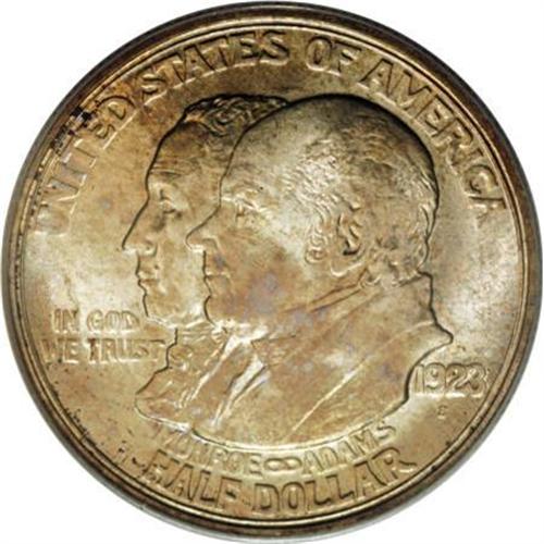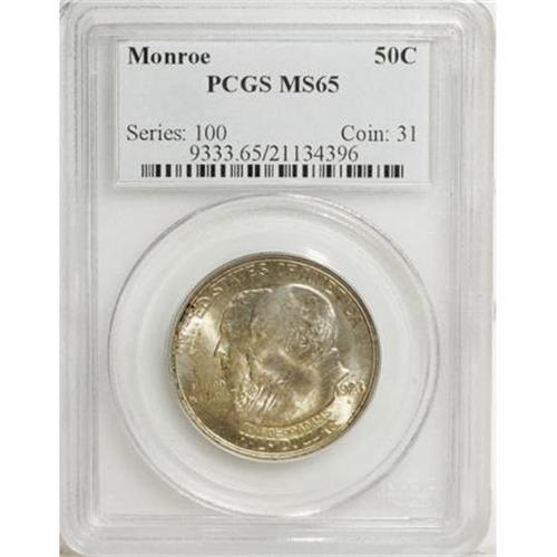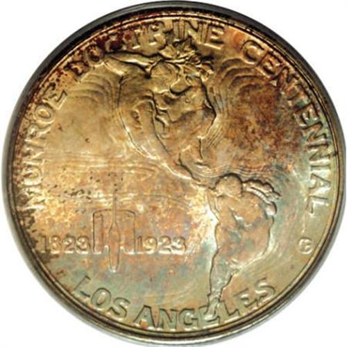 <B>1923-S 50C Monroe MS65 PCGS.</B></I> The obverse of this highly lustrous Gem representative exhibits a dash of golden toning in the center while a more extensive layer of blue and gold toning adorns the reverse. Much above-average sharpness for this notoriously weak issue. The Monroe Doctrine half was struck in conjunction with a motion picture exposition, which explains the San Francisco mintmark.<BR><BR><b>Shipping:</b> Coins & Currency (<a target="_blank" href="http://www.heritageauctions.com/common/shipping.php">view shipping information</a>\)