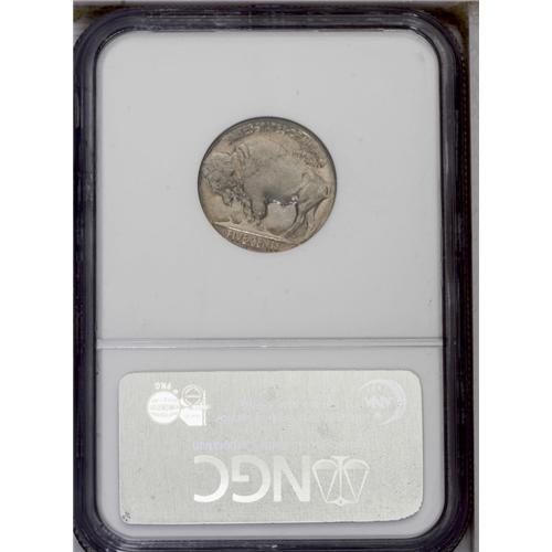 <B>1923-S<5C> MS64 NGC.</B></I> While readily available in the circulated grades, the 1923-S nickel becomes scarce in Mint State, particularly at the Gem level. Moreover, the issue usually comes weakly struck. The current near-Gem displays better-than-average definition, though the hair on the bison's head is weak. Lustrous surfaces are covered with a thin veneer of rose-gold and powder-blue patina. A few barely discernible slide marks are noted on the high points of the relief. NGC has certified 25 coins finer (2/06).