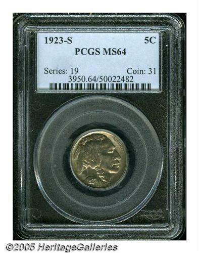 <B>1923-S<5C> MS64 PCGS.</B></I> Rich lilac patina embraces the devices, while the fields possess sea-green and rose colors. The centers are crisp, although the borders are notably flowlined (as produced) because of the late state of the dies.